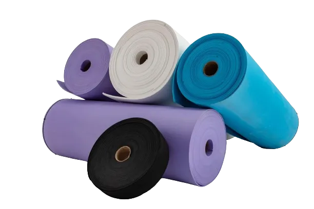 Características: São flexíveis, com possibilidade de fornecimento com espessuras a partir de 1mm, larguras de 20mm à 1500mm, durezas, densidades e cores diversas.
